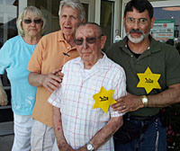 Messianic Rabbi Henry Morse (right) with Holocaust victims at Cobb Corner Shopping Center in Stoughton, MA raising money for the Holocaust Memorial in Nashua, NH.