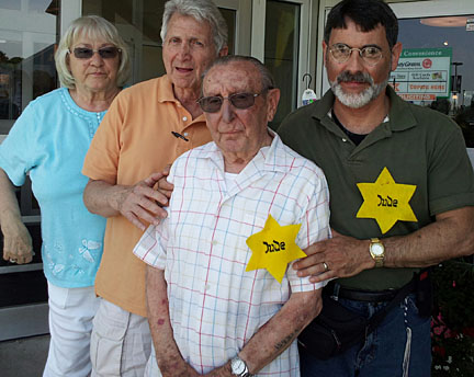 Messianic Rabbi Henry Morse (right) with Holocaust victims at Cobb Corner Shopping Center in Stoughton, MA raising money for the Holocaust Memorial in Nashua, NH.